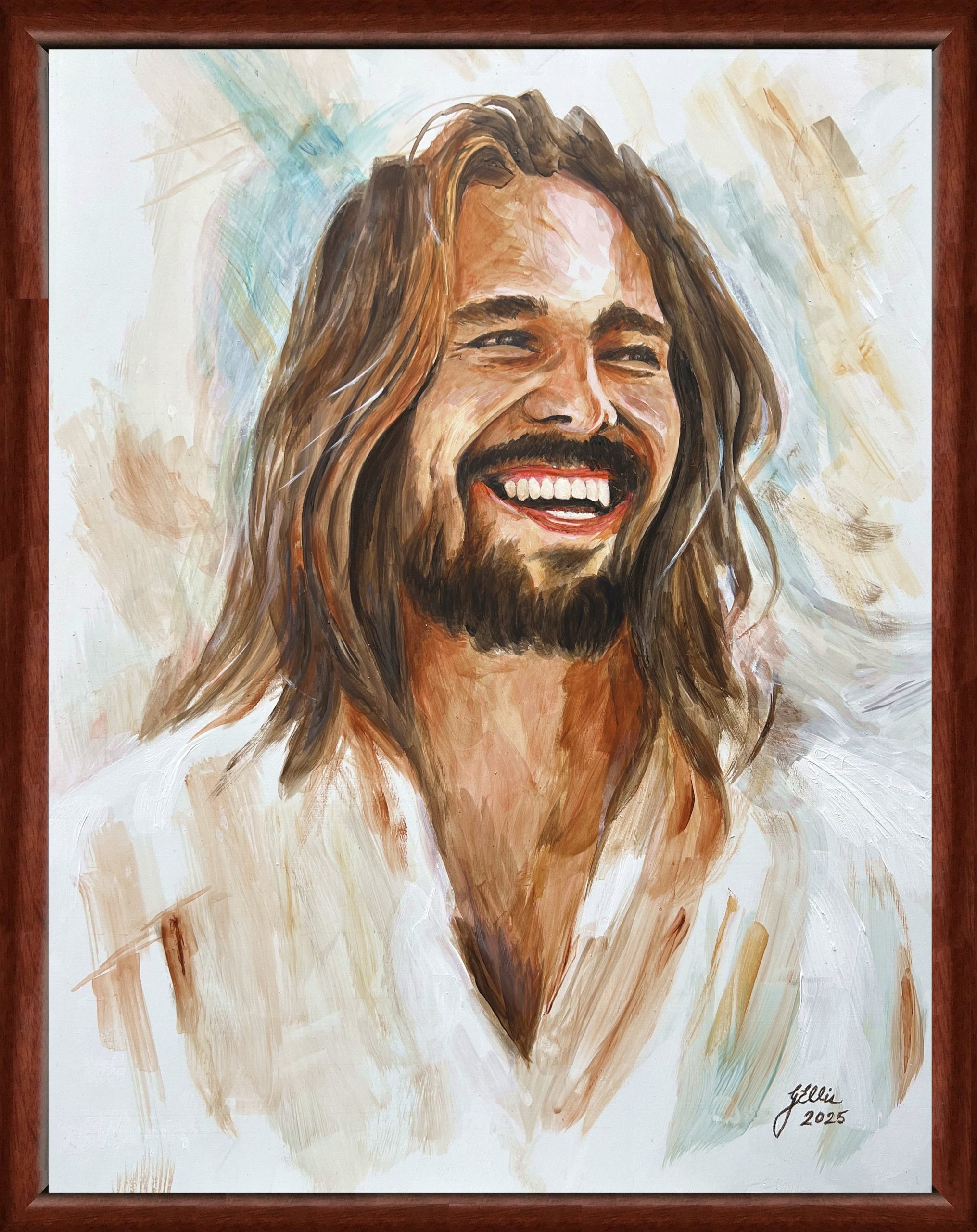 by Godfrey J. Ellis This is the second painting of the “Joyous Christ.” Merry kept the first one and this is the one we gave to our son and dau-in-law. lsdjfslkdf