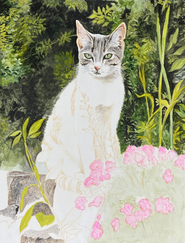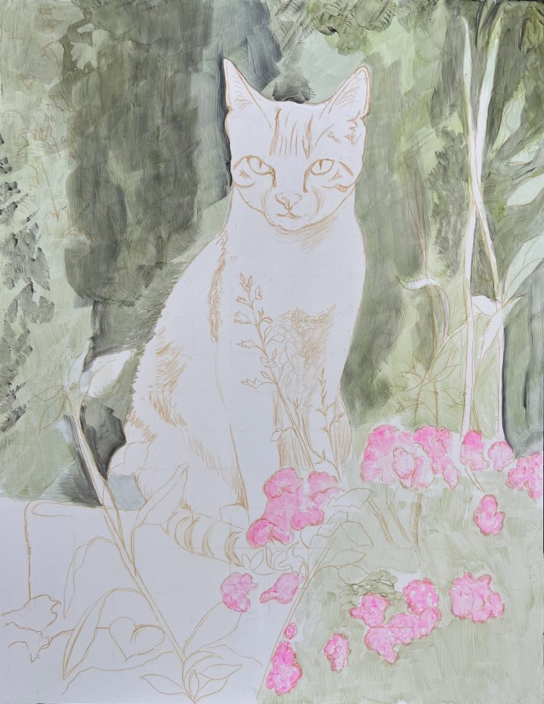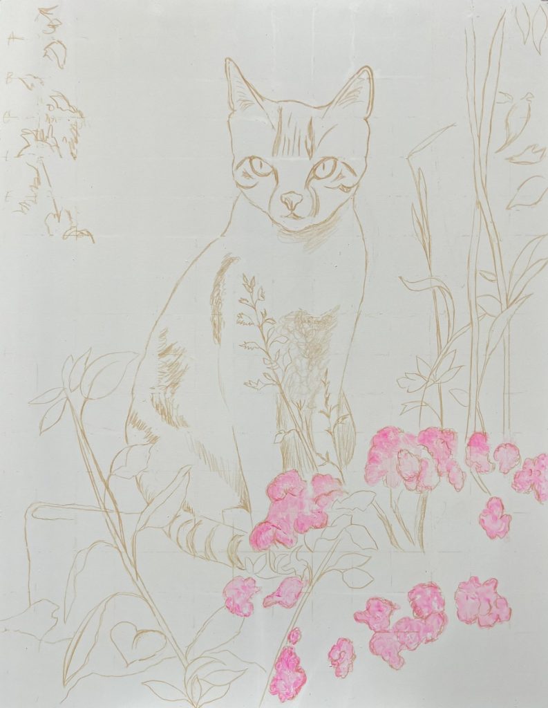 I think my kitty-cat is a little skinnier than the original photo. Below are three photos of the picture as it took form.