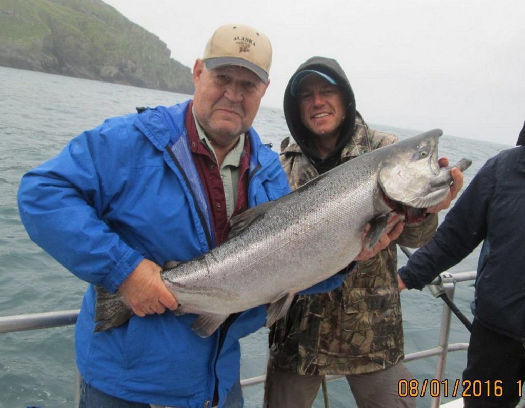 The reference photo is just a snapshot of a King Salmon he had caught on a trip to Alaska. I initially thought the other man was his son, but later learned that it was a deckhand. Steve apparently did not have the correct license for this type of salmon but the deckhand manipulated licenses so that Steve could keep it.