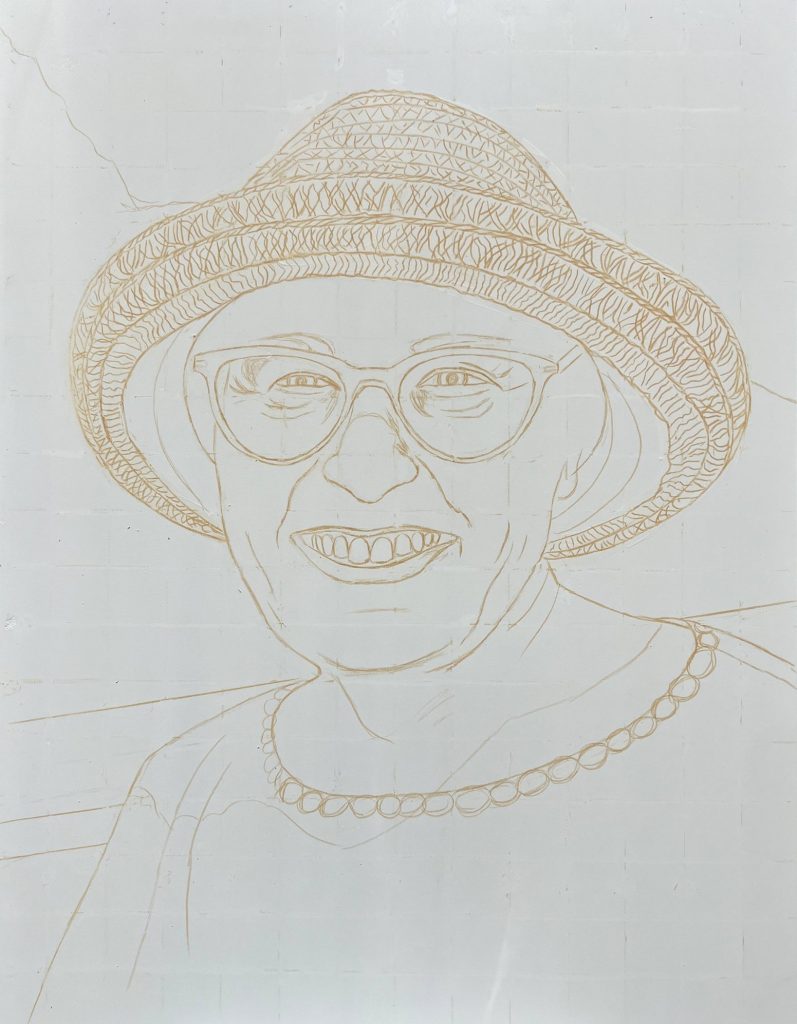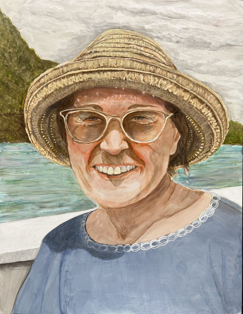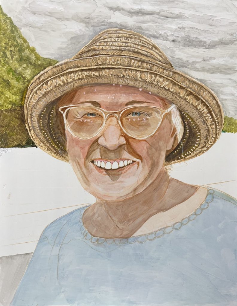 It can be surprising, sometimes, to tell which paintings will come easily and which will be difficult. This one was quite hard because so much of the face was in shadow with spots of light coming through the straw hat. The photo of the painting is not the best, but it gives an idea.